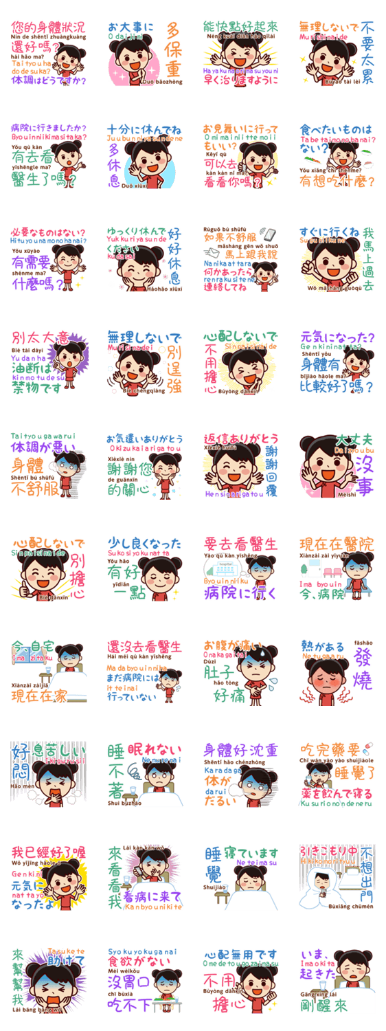体調不良伝える 気遣う 日本語 台湾語 Lineクリエイターズスタンプ Stamplist