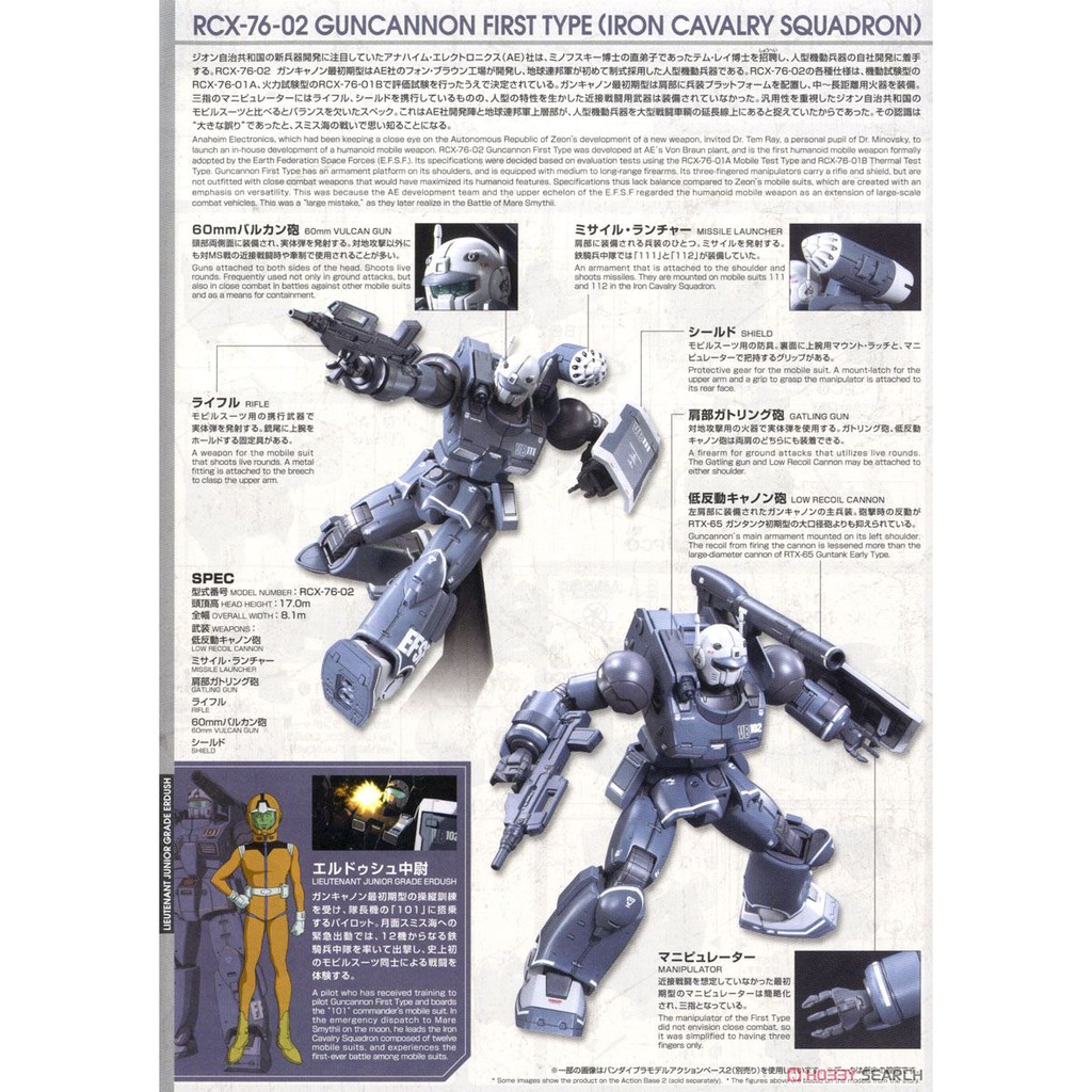 Gundam The Origin Hg 1 144 Rcx 76 02 Guncannon Initial Type Iron Cavalry Squadron Unit Gunpla Otaku Hq